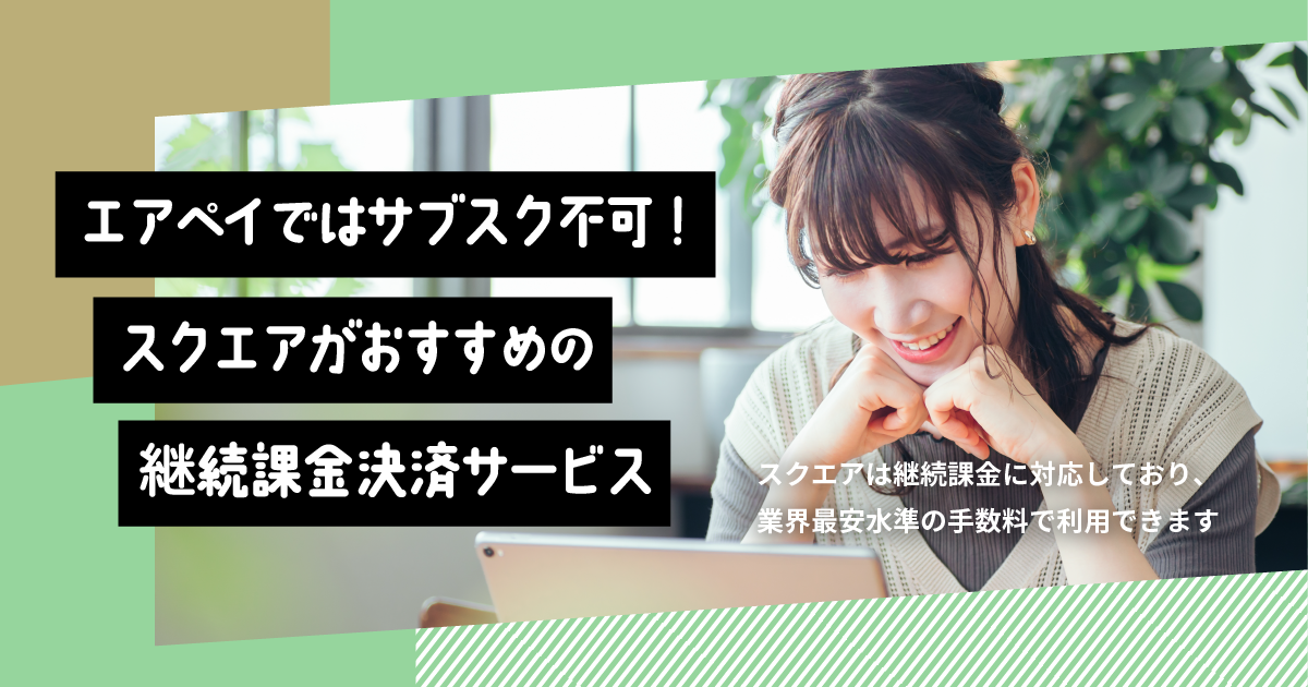 エアペイでは継続課金に対応していないため、スクエアのような決済サービスを利用することをおすすめです。