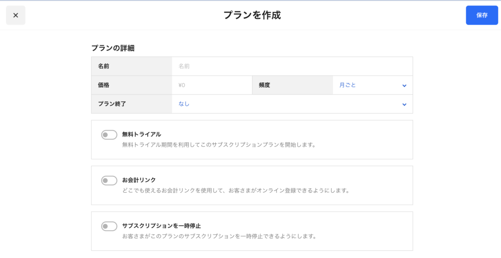 スクエアの管理画面 メニューから「プランを作成」し、サブスク内容を作成しましょう。