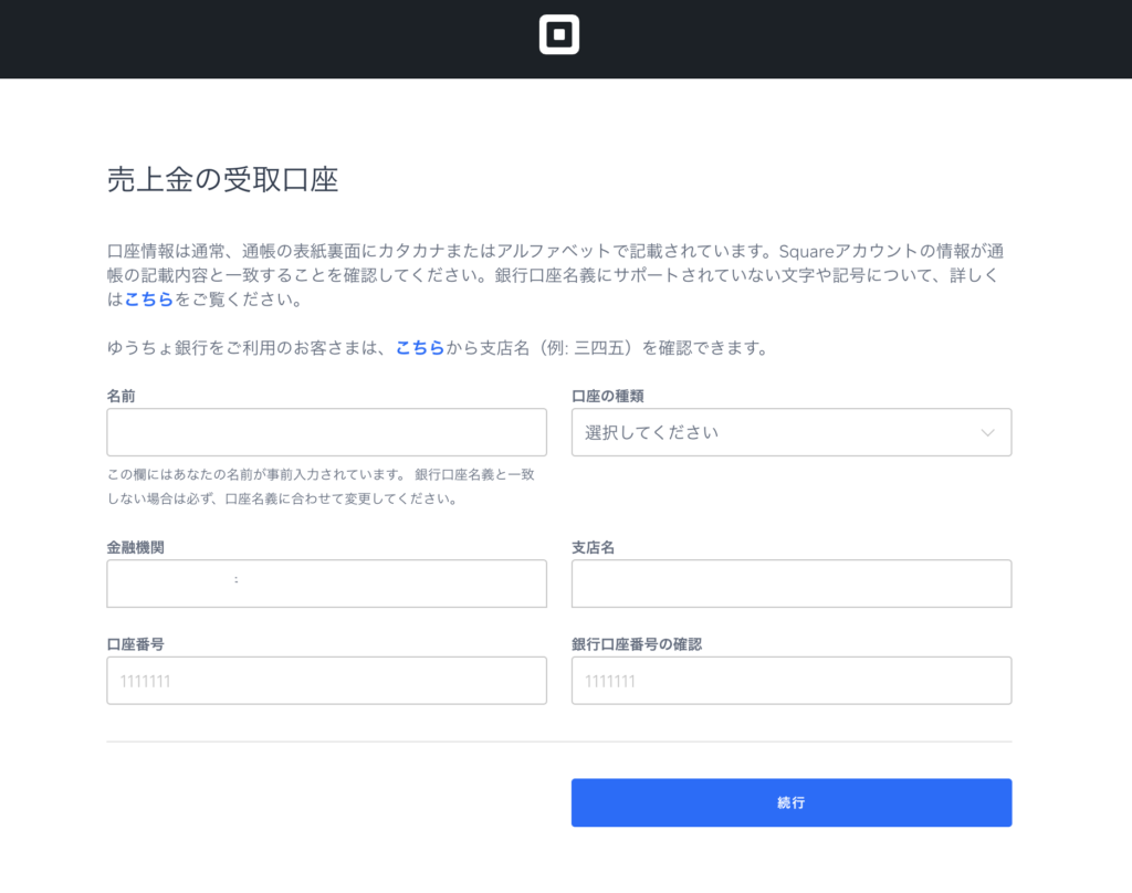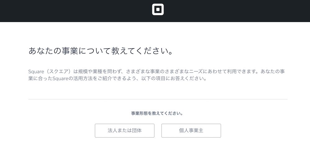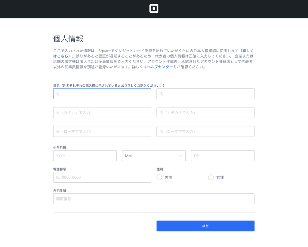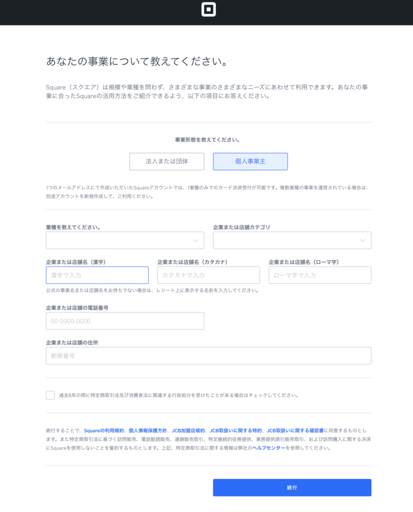スクエアの申込フォームに必要な情報は非常に少ないです。