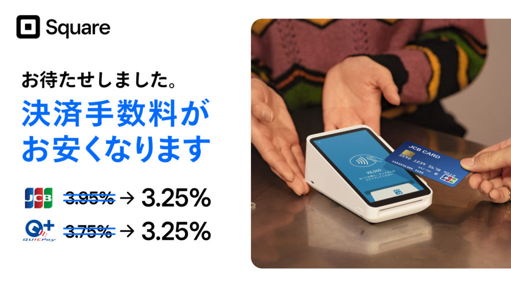 スクエアは、4/28からJCBとQUICPayの決済手数料を引き下げ、業界最低水準の決済手数料が実現しました。これにより、他社と比較しても遜色ない手数料設定となります。
