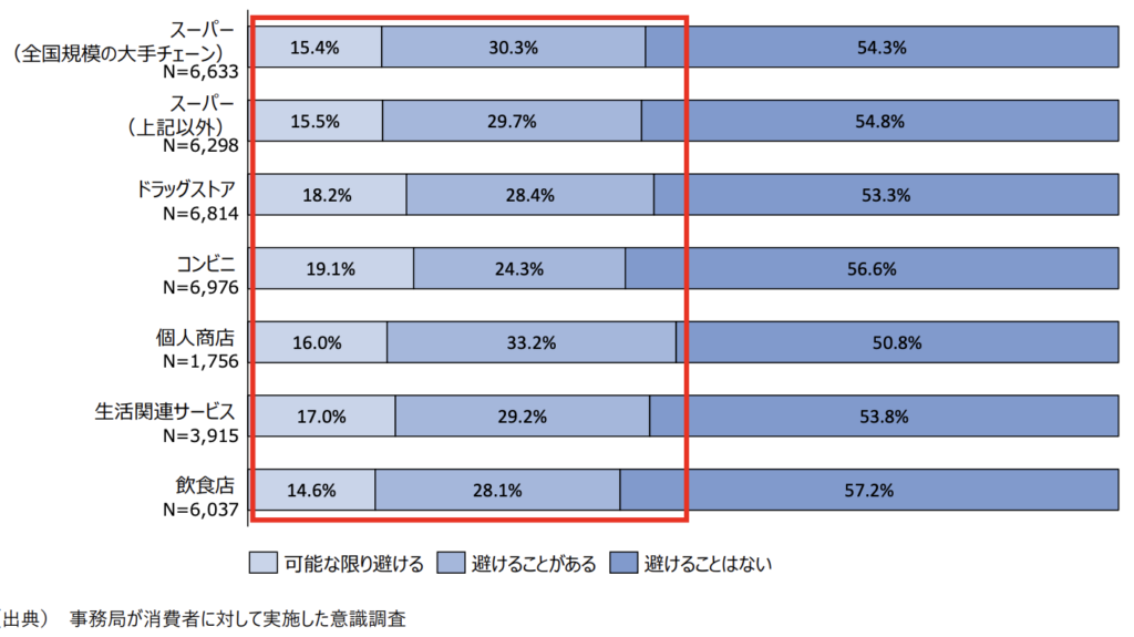 キャッシュレス決済の未対応の場合、キャッシュレス決済利用者は利用を4割避ける事例がある