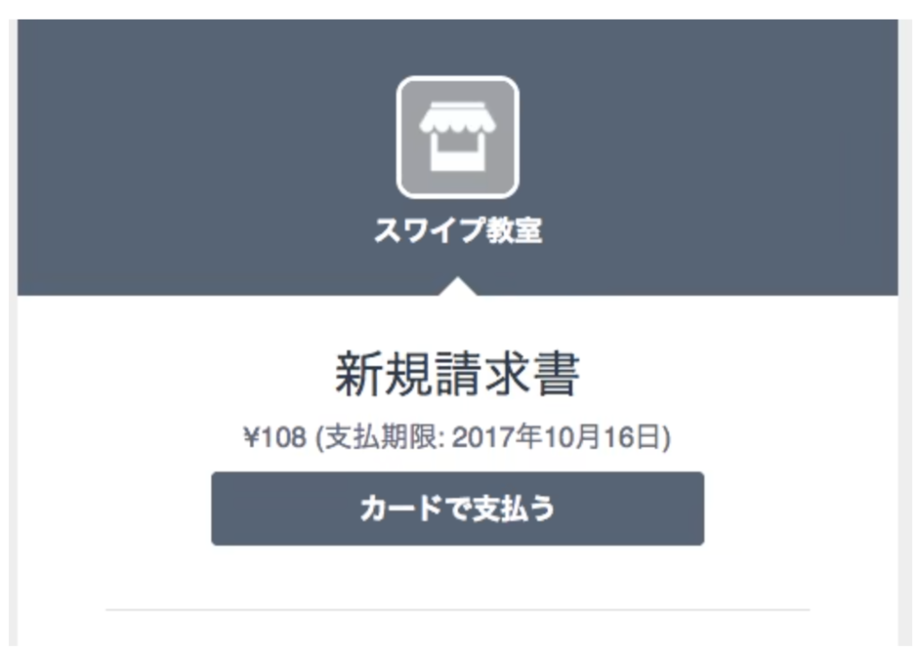 お客様が受け取る請求書の例 - STEP3お客様にカード情報を登録してもらうお客様にカード情報を登録してもらう方法は、まずお客様にメールを送信し、「カードで支払う」のボタンを押してもらいます。押すと、お客様がカード情報を登録し、継続課金の承諾を得ることができるページが表示されます。ここから、お客様はカード情報を入力し、継続課金に同意することで、簡単に決済手続きを完了することができます。